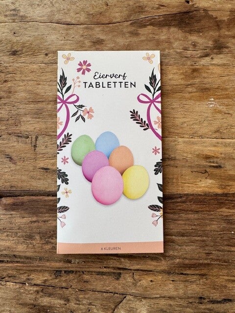 Niets is leuker dan je eigen eieren verven met Pasen! Met deze set eierverf tabletten in 6 vrolijke kleuren tover je elk ei om tot een waar kunstwerk. Geweldig om samen met kinderen te doen, of als creatieve toevoeging aan je paasdecoratie!